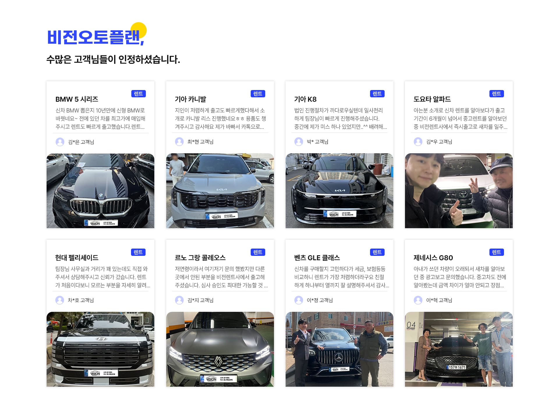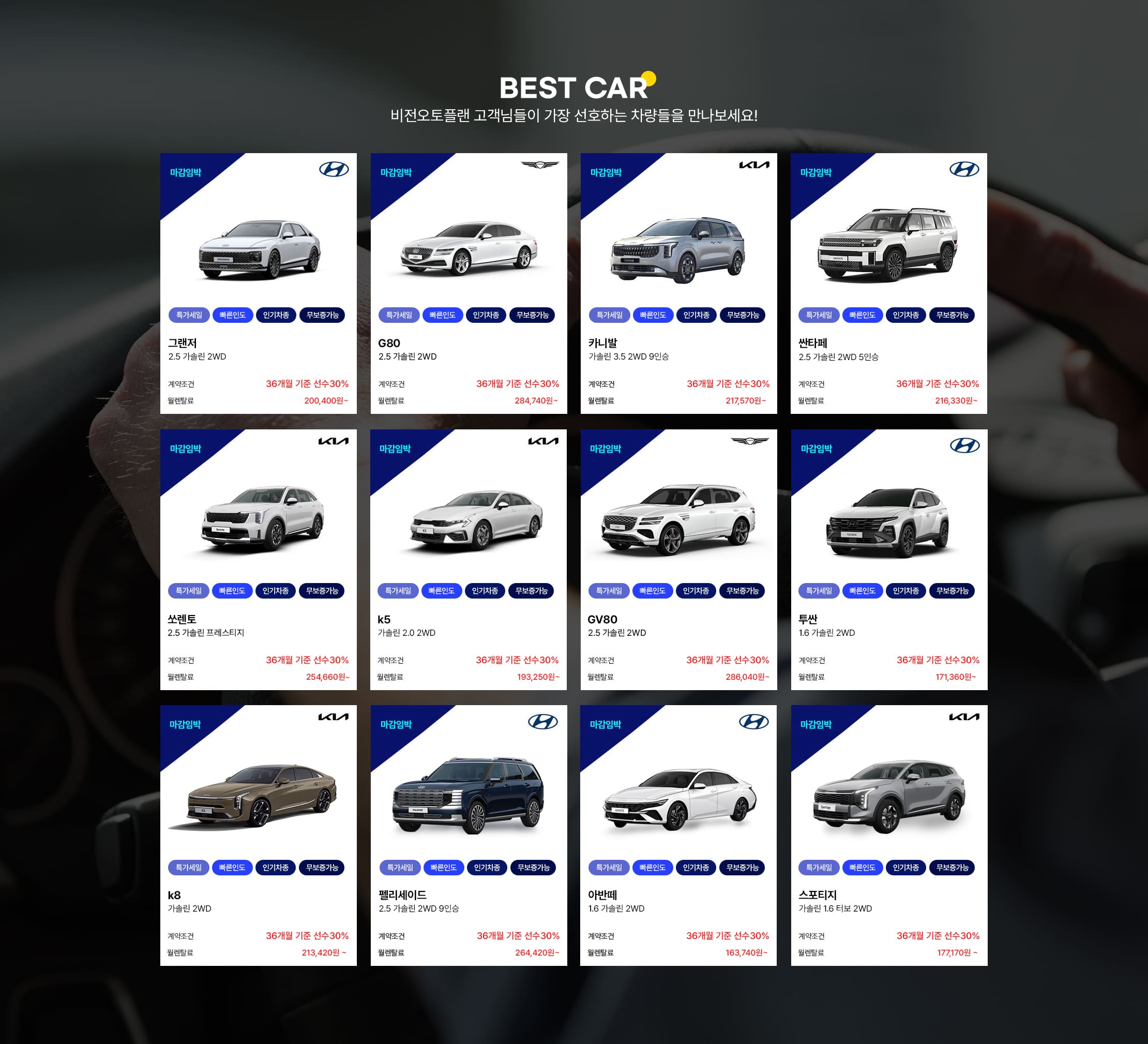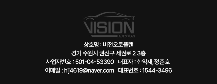 비전오토플랜 은/는 홈페이지 운영에 있어 필요 시 고객님의 정보를 찾아내고 저장하는 ‘쿠키 (Cookie)'를 운용합니다.